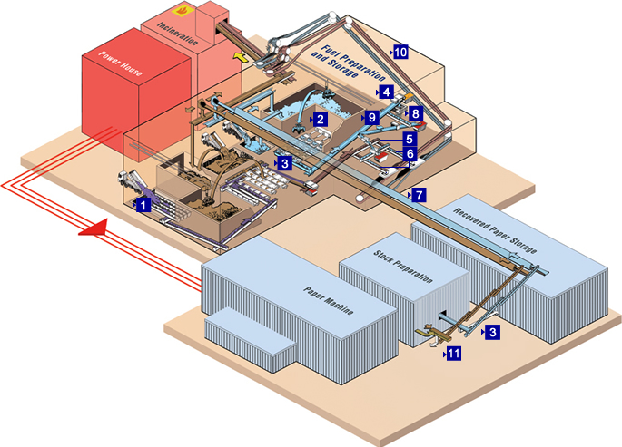 By separating, conditioning, transporting and storing residual materials according to their thermic value, paper mills can optimally utilize their waste materials by turning them into energy. This turn-key fuel preparation & storage system not only increases fuel efficiency but also provides a sustainable energy concept while increasing profitability.