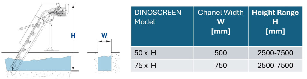 The DINOSCREEN is a travelling screen designed for continuous operation, which is submerged in the Sewer Channel. For filtering and back hold of Contaminants an upwards travelling screen chain is used, this 30 degrees inclined Screen Chain consists of single fiber reinforced composite Rake Fingers with 3 or 6 mm vertical gap in between.