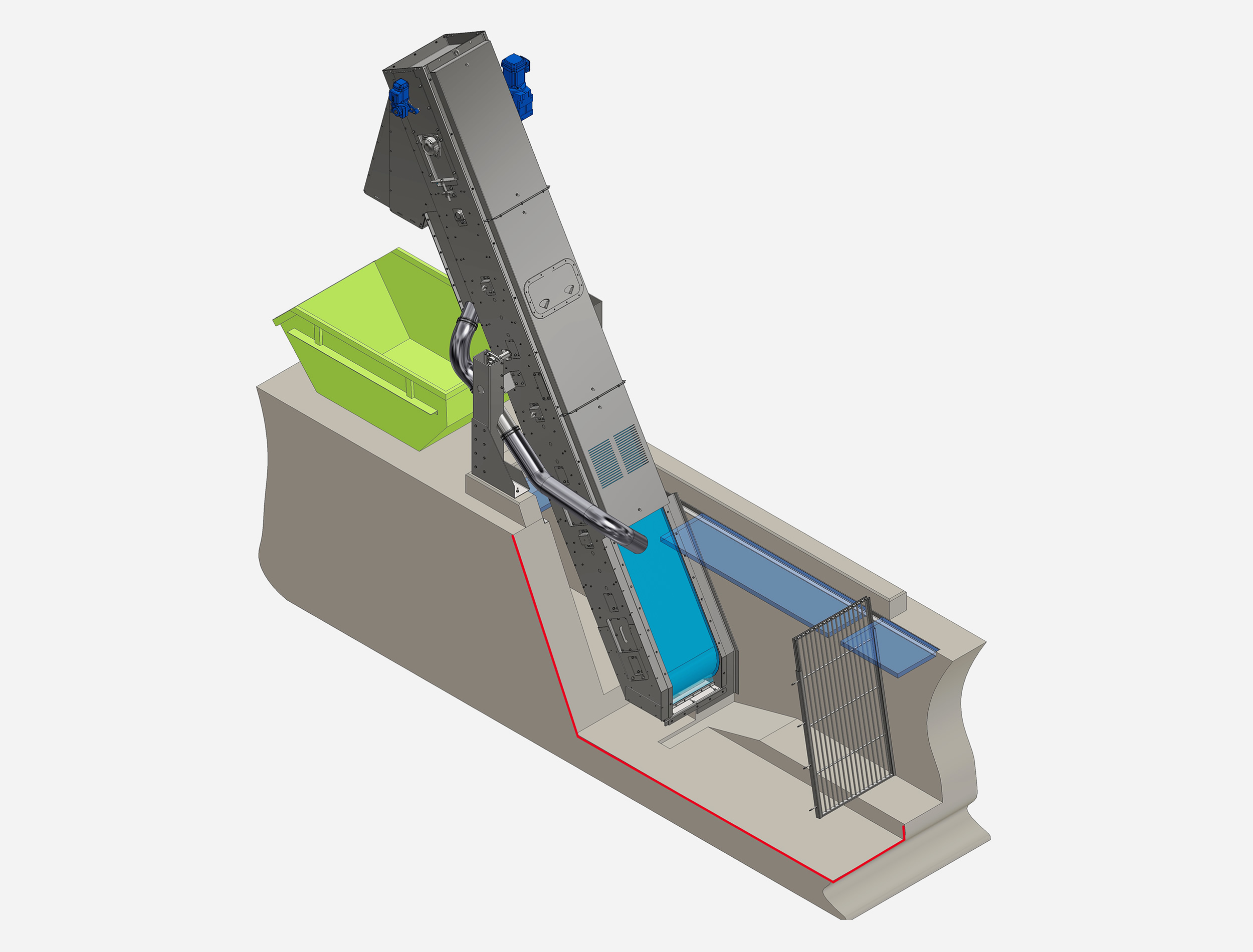 In existing and new green field Paper Mills spilling- and waste waters are collected in U-Drain- / Sewer Channels. Very often Coarse Contaminants such as plastic foils, wood residuals, polystyrol and many others accumulate in these Sewer Channels and consequently plug pumps and discharge pipes.