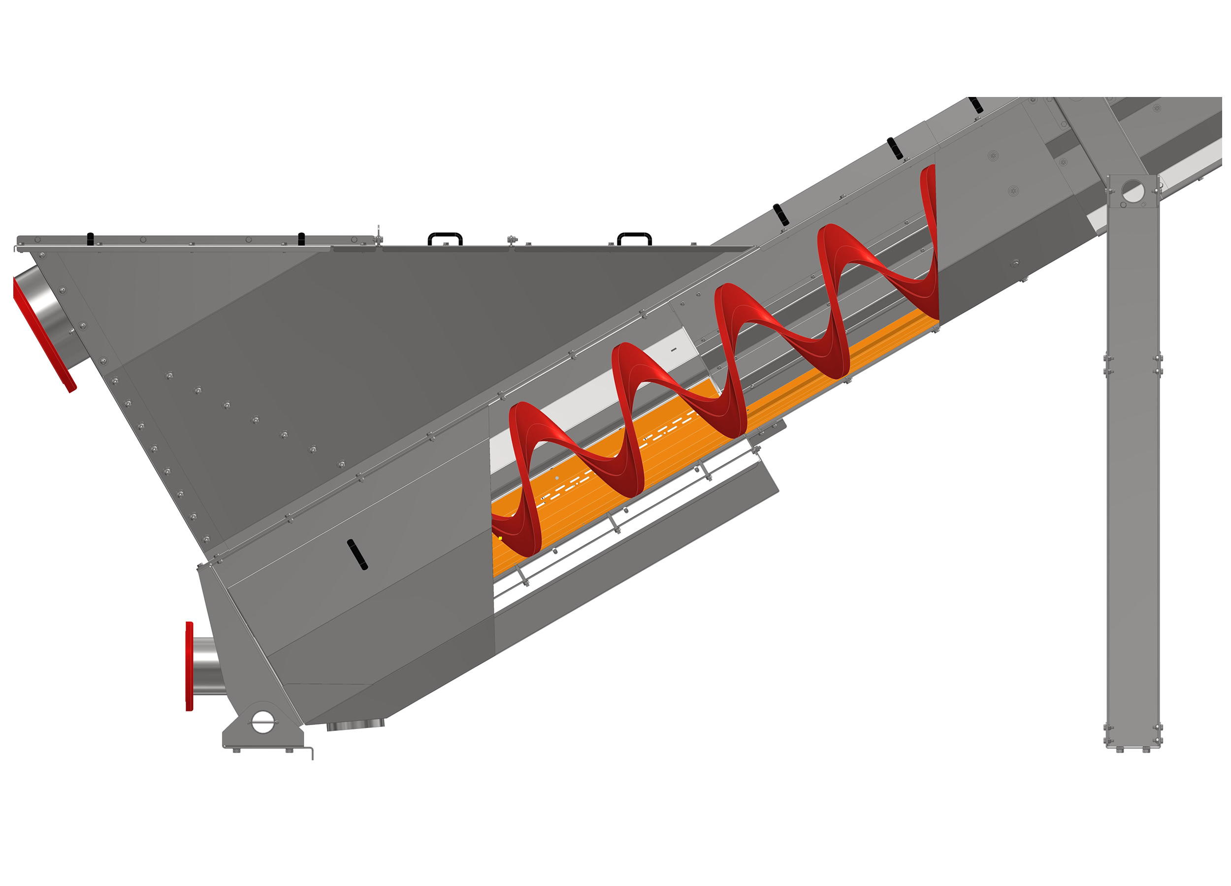 • Due to different zones in the screen basket, smaller rejects (stones, glass, staples, etc.) can be discharged via the spiral despite the high dewatering rate.