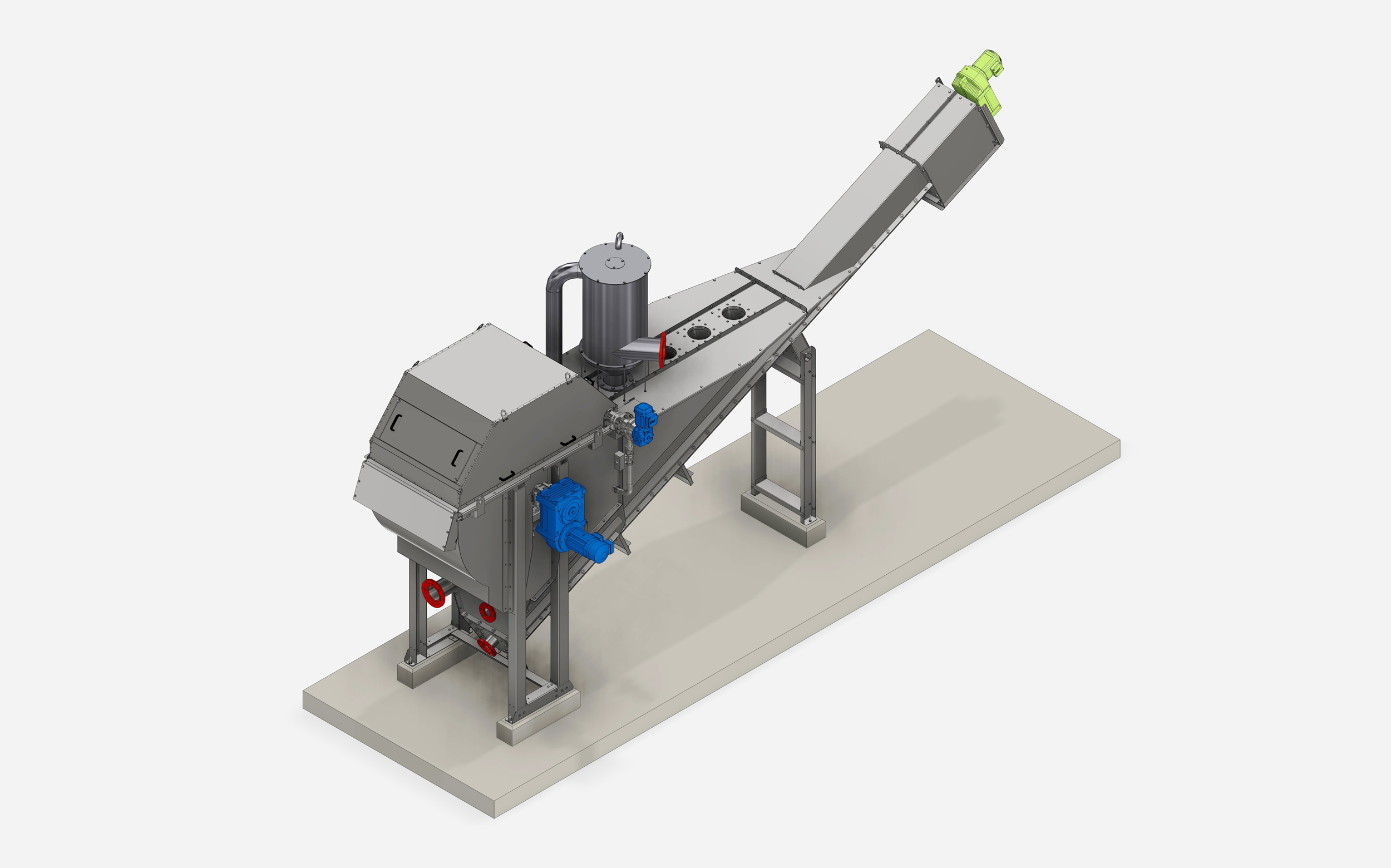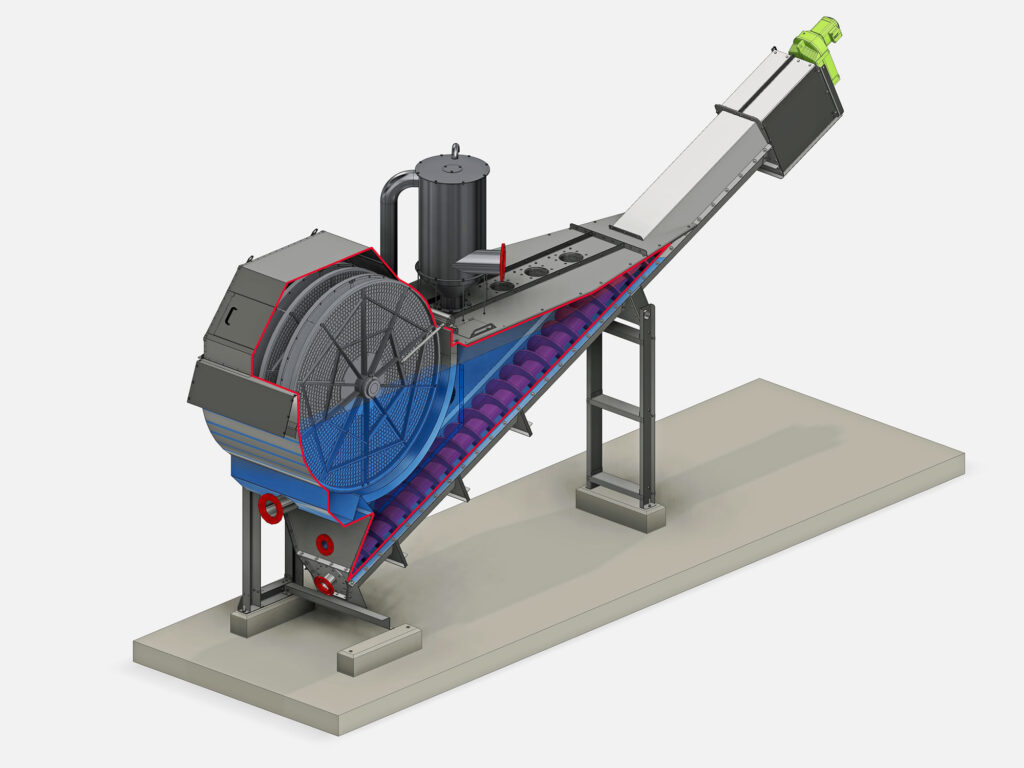 - High Capacity on small installation space, direct discharge of cleaner residual fraction (sand, glass etc.)